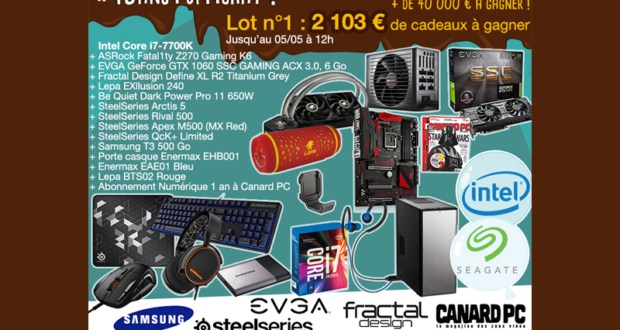 Lots à gagner : Chaque jour (sauf le week-end), 1 lot de matériel informatique (valeur moyenne 2200 euros).