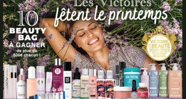 10 Beauty Bags à gagner (500 € chacune) : Grand jeu de printemps 2023 des Victoires de la Beauté.