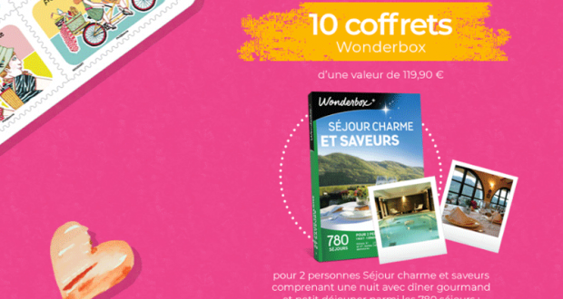 du 2ème au 11ème prix : 1 coffret Wonderbox « Séjour Charme et Saveurs » d’une valeur unitaire de 119,90€.