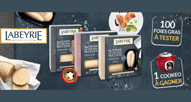 100 coffrets Mon foie gras maison de Labeyrie : Candidatez jusqu’au 9 décembre pour pouvoir tester l’un des 100 coffrets Mon foie gras maison. Vous serez invité(e) par la suite à poster la photo de votre réalisation. La plus belle photo remportera le Cookeo en jeu !