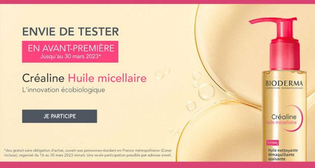 100 Créaline Huile micellaire BIODERMA à tester : Tentez de remporter la première Huile micellaire écobiologique pour votre peau sensible et testez-la en avant-première !