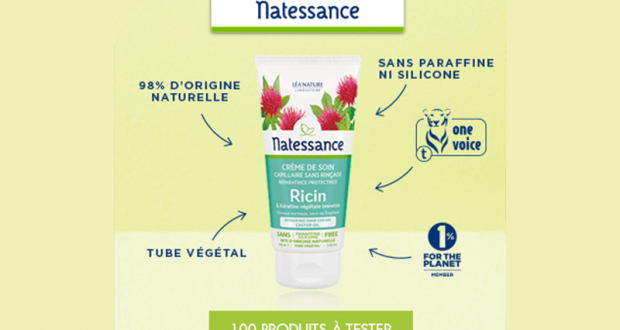 100 Crèmes de Soin Capillaire sans rinçage Ricin Natessance à tester : Inscrivez-vous et vous ferez peut-être partie des 100 personnes sélectionnées pour recevoir et tester ce produit.