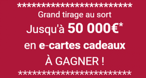 100 e-cartes cadeaux E. Leclerc de 500 euros offertes : 50 000€ TTC à gagner répartis en 100 (cent) lots de e-cartes cadeaux E. Leclerc d’une valeur maximale unitaire de 500€ TTC (subdivisés en 2 (deux) e-cartes cadeaux d’une valeur maximale unitaire de 250 € TTC chacune).