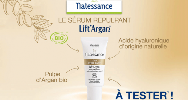 100 Sérums Repulpants Lift’Argan Natessance à tester : Inscrivez-vous et tentez de recevoir, tester et donner votre avis sur le Sérum repulpant Lift’Argan® Natessance® !