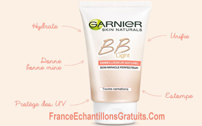 130000 échantillons gratuits BB Crème BB Light de Garnier : 1284 échantillons gratuits distribués par jour, cliquez sur le bouton ci-dessous et remplissez le formulaire avant le 30 Novembre 2015. si vous souhaitez recevoir un échantillon gratuit BB Light de Garnier :