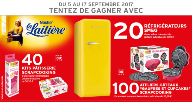 Lots à gagner : 20 réfrigérateurs SMEG (valeur unitaire 1099 euros), 100 coffrets « Atelier gâteaux gaufres et cupcakes » (valeur unitaire 59 euros), 40 kits de pâtisserie (valeur unitaire 36 euros).