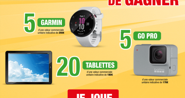 20 tablettes – 5 Go Pro et 5 montres Garmin offertes : Les dotations mises en jeu sont :