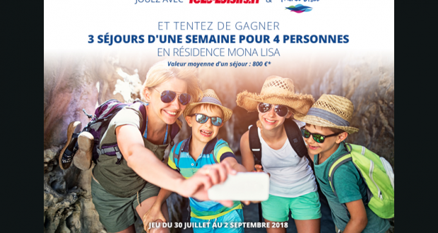 3 séjours d’une semaine dans une résidence Mona Lisa : Gagnez 3 séjours d’une semaine pour 4 personnes dans une résidence Mona Lisa (valeur unitaire 800 euros).