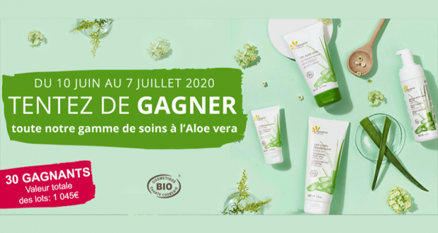30 lots de 4 produits de soins Fleurance Nature offerts : Toute notre gamme de soins à l’Aloe vera à gagner. La gamme de soins à l’Aloe vera certifiée cosmétique bio est composé de :