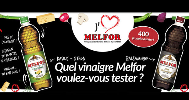 Melfor vous propose de découvrir ses deux vinaigres : le Côté Sud au citron et au basilic et le Côté Balsamique. Jusqu’au 18 juin 2017, candidatez afin de recevoir l’un des deux vinaigres Melfor. Quel vinaigre voulez-vous tester ? Quelle recette allez-vous préparer avec ? 400 membres seront sélectionnés et recevront l’un des deux vinaigres. Alors, êtes-vous prêt à découvrir la douceur des produits Melfor C’est à vous de jouer.