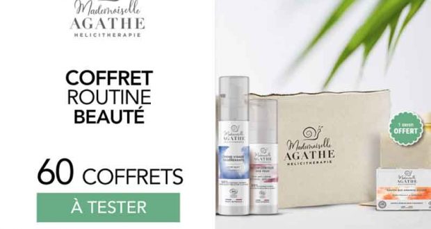 60 coffrets beauté Mademoiselle Agathe bio à tester : Confrontée au stress oxydatif, aux UV et à la pollution, votre peau a besoin de soutien ! Pour prendre soin de votre peau, découvrez le coffret Mademoiselle Agathe bio, une routine de soins complète pour apporter confort et soin à toutes les peaux grâce à la synergie exclusive de la bave d’escargot et d’actifs hydratants. Venez tester en exclusivité cette semaine le coffret Mademoiselle Agathe bio !