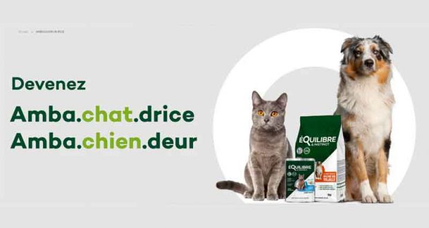60 Produits Équilibre & instinct pour chien et chat à tester : Candidatez et faites tester à votre chien ou à votre chat notre alimentation saine et complète, élaborée par des vétérinaires et fabriquée en Normandie : devenez amba.chat.drice ou amba.chien.deur.
