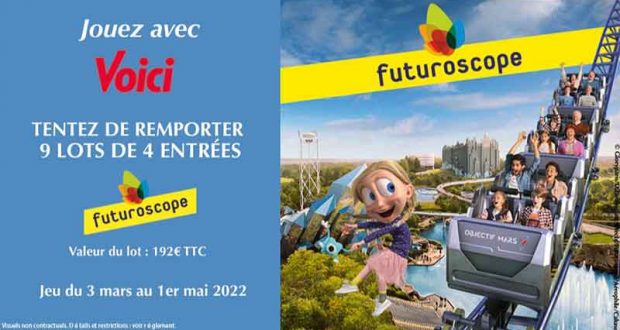 9 x 4 entrées pour le parc du Futuroscope à Poitiers offertes : Participez à ce jeu concours et tentez de remporter 9 x 4 entrées pour le parc du Futuroscope à Poitiers. Valeur du lot : 192€