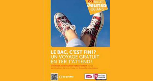 Un Billet Jeunes aller-retour gratuit sur une journée pour la destination de votre choix en Nouvelle-Aquitaine entre le 7 juillet 2021 et le 31 août 2021 au plus tard.