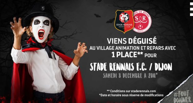 Billet gratuit pour le match de foot Stade Rennais FC / Dijon le 28/10/2018 (15 h), offert à toute personne déguisée au Village Animations : Le Roazhon Park se met aux couleurs d’Halloween pour la réception de Reims dimanche.