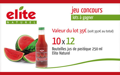 Bouteilles de jus de pastèque : Participez à ce jeu concours gratuit pour gagner 10 lots de 12 bouteilles de jus de pastèque (valeur unitaire 35 euros)