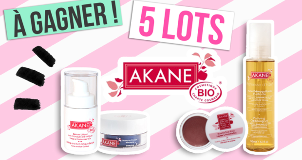 Participez à ce jeu concours gratuit pour gagner 5 lots comportant 1 huile démaquillante Akane + 1 sérum + 1 masque + 1 baume à lèvres.