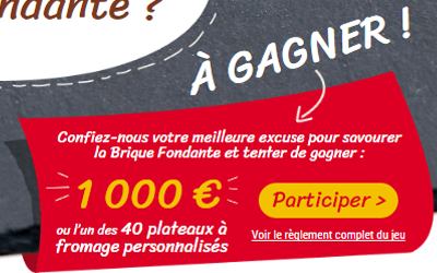 Concours gagnez 1000 euros : Participez à ce jeu concours gratuit pour gagner 1 chèque de 1000 euros, 40 plateaux à fromage personnalisés (valeur unitaire 25 euros).