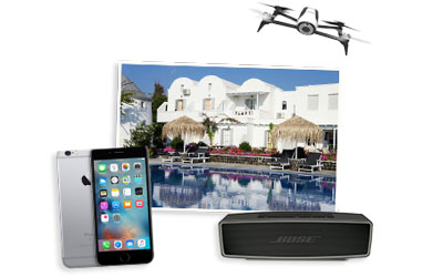 Concours gagnez 2 séjours d’une semaine pour 2 à Santorin en Grèce : Participez à ce jeu concours gratuit pour gagner 2 séjours d’une semaine pour 2 personnes à Santorin en Grèce (valeur unitaire 2000 euros), 3 smartphones iPhone 6S (valeur unitaire 750 euros), 3 drones Parrot (valeur unitaire 550 euros), 5 enceintes Bose (valeur unitaire 230 euros)