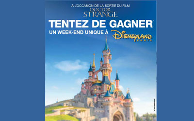 Concours gagnez des week-ends pour 4 personnes à Disneyland Paris : Participez à ce jeu concours gratuit pour gagner 3 week-ends pour 4 personnes à Disneyland Paris les 26 et 27 novembre, 50 lots de 2 places de cinéma pour le film « Doctor Strange »