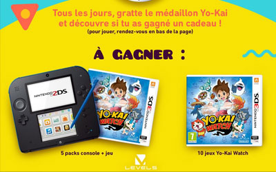 Console de jeux Nintendo 2DS : Participez à ce jeu concours gratuit pour gagner 5 lots comportant 1 console de jeux Nintendo 2DS + 1 jeu vidéo 3DS « Yo-Kai Watch » (valeur unitaire 140 euros), 10 jeux vidéo 3DS « Yo-Kai Watch ».