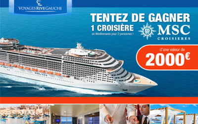 Croisière d’une semaine pour 2 en Méditerranée en pension complète : Participez à ce jeu concours gratuit pour gagner 1 croisière d’une semaine pour 2 personnes en Méditerranée en pension complète (valeur 2000 euros).