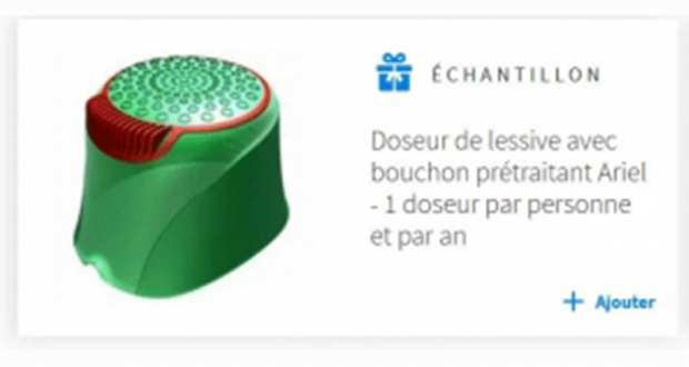 Échantillons Gratuits : Doseur de lessive avec bouchon prétraitant Ariel