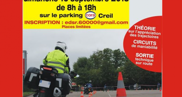 Formation gratuite de pilotage moto – Saint Maximin : Le dimanche 16 septembre 2018 les motards de la gendarmerie vous encadrent pour une formation gratuite de pilotage moto sur le parking de CORA à Creil ! De 8h à 18h vous aurez l’occasion d’avoir des cours théoriques sur l’appréciation des trajectoires en moto, des cours pratiques sur un circuit de maniabilité et pour finir une sortie technique sur la route et tout cela encadré par les différents militaires de l’Escadron de Sécurité Routière de la Gendarmerie de l’Oise !
