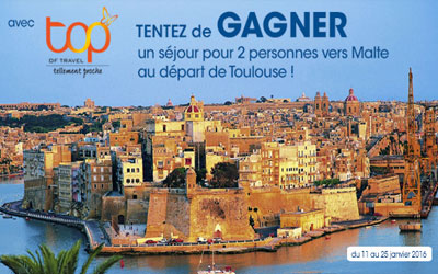 Gagnez un voyage de 7 nuits pour 2 à Malte : Participez à ce jeu concours gratuit pour gagner un voyage de 7 nuits pour 2 personnes à Malte au départ de Toulouse d’une valeur de 1800 euros.