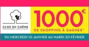 Lots à gagner : 1 bon d’achat Centre commercial Clos du Chêne de 1000 euros valable à Marne-la-Vallée. Date limite de participation : 20/02/2018. J’en profite