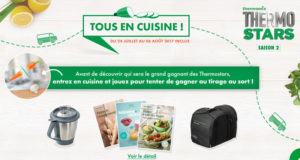 Lots à gagner : 1 lot comportant comportant 1 bol Thermomix + 1 carnet « Boissons et Cocktail » (valeur 224 euros), 1 lot comportant 1 sac de transport Thermomix + 2 livres de recettes (valeur 119 euros), 1 lot comportant 1 sac transport TM5 + 1 carnet « Boissons et Cocktail, 50 kits pochoirs à gâteau Thermomix. Date limite de participation : ...