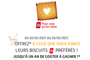 Participez à ce jeu concours gratuit pour gagner 25 lots d’un an de goûters Lu (valeur unitaire 75 euros), 2500 paquets de biscuits Lu. Date limite de participation : 26/03/2017. Bonne chance! J’en profite