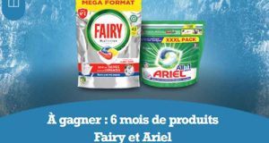 120 Lots de 4 Produits Fairy et Ariel offerts : Participez gratuitement au jeu par tirage au sort organisé par le site Envie de Plus et tentez de remporter l’un des 120 Lots de 4 Produits mis en jeu. Les lots : 20 lots par mois d’une valeur commerciale indicative de 65.84€, composés de : – 1 paquet d’Ariel EAN ...