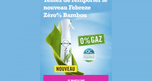 300 Nouveaux Febreze Zéro% Bambou offerts : Participez gratuitement au jeu par tirage au sort organisé par « Envie de Plus » et tentez de remporter l’un des 300 x 1 Febreze Zero% Bambou. Fin du jeu le 31/08/2019. J’en profite
