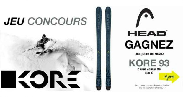 Lots à gagner : 1 paire de skis Head Kore (valeur 539 euros).