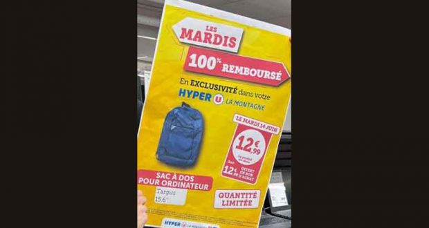 Sac à dos pour ordinateur 15.6″ Targus 100% remboursé : Tous les mardis votre Hyper U la Montagne vous fait profiter d’une offre sur des produits qui sont 100% remboursé ! 😃