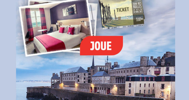 Lots à gagner : 1 séjour de 2 nuits pour 4 personnes à Saint-Malo avec des invitations pour le festival « Quai des Bulles » du 27 au 29 octobre (valeur 700 euros), 40 lots de 2 entrées pour le festival, 10 affiches.