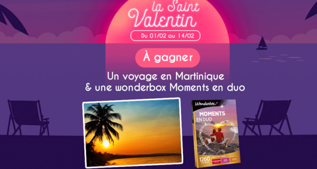 Lots à gagner : 1 séjour en Martinique (valeur 3300 euros), 15 coffrets Smartbox « Moment en Duo » (valeur 29 euros).