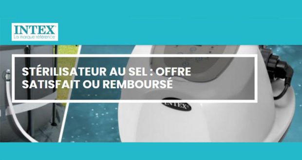 Stérilisateur au sel INTEX 100% Remboursé : Offre d’Essai INTEX : Stérilisateur au sel Satisfait ou 100% Remboursé.