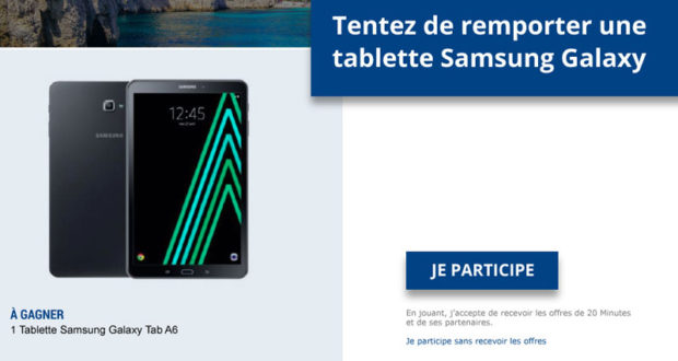 Lots à gagner : 1 tablette Samsung Galaxy Tab A6 (valeur 270 euros).