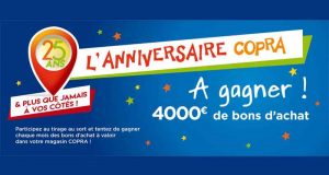 Lots à gagner : 8 bons d’achat Copra de 50 euros. Date limite de participation : 25/12/2017. J’en profite