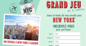 Lots à gagner : 1 voyage pour 2 personnes à New-York (valeur 3750 euros). Date limite de participation : 10/09/2017. Bonne chance! J’en profite