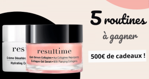 5 routines de soins anti-âge Resultime offertes : Spécialiste de l’anti-âge, Resultime allie technologie et science avec des soins offrant des résultats exceptionnels. Nous vous proposons de remporter deux soins phares : la crème désaltérante aux 3 acides hyaluroniques et le gel-sérum au collagène, tous deux formulés avec des actifs uniques. La crème hydrate et lisse la peau et le ...