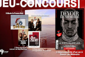 Abonnements d’un an à « Devoir de Mémoire » : Participez à ce jeu concours gratuit pour gagner 3 abonnements d’un an à « Devoir de Mémoire », 5 box gastronomiques « Made in France Box », 2 albums CD du groupe Nèg’Marrons, 1 pass pour 2 personnes au concert des Nèg’Marrons, 5 invitations pour l’exposition « Frontières » au Musée de l’Immigration. Réponse1 : Salvadore de Bahia ...