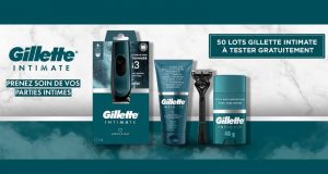 50 Gammes de Soins épilation Gillette Intimate à tester : 50 gammes d’épilation Gillette Intimate à tester gratuitement si vous répondez à un questionnaire rapide ! Une gamme de soins douce, précise et simple sur laquelle vous pouvez toujours compter. Sont mis en jeu, 50 lots d’une valeur de 90,65€ composés de : – 1 x Stick Anti-Frottement Gillette Intimate. ...