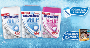 300 boîtes de chewing-gums Mentos White Always à tester gratuitement : Candidatez pour tester les chewing-gums Mentos White Always Menthe, Menthe douce ou Bubble fresh. Si vous êtes sélectionné(e), vous recevrez la boîte de chewing-gums Mentos White Always de votre choix et serez invité(e) à donner votre avis en répondant au questionnaire. Sinon, rdv dans votre magasin Casino pour trouver ...